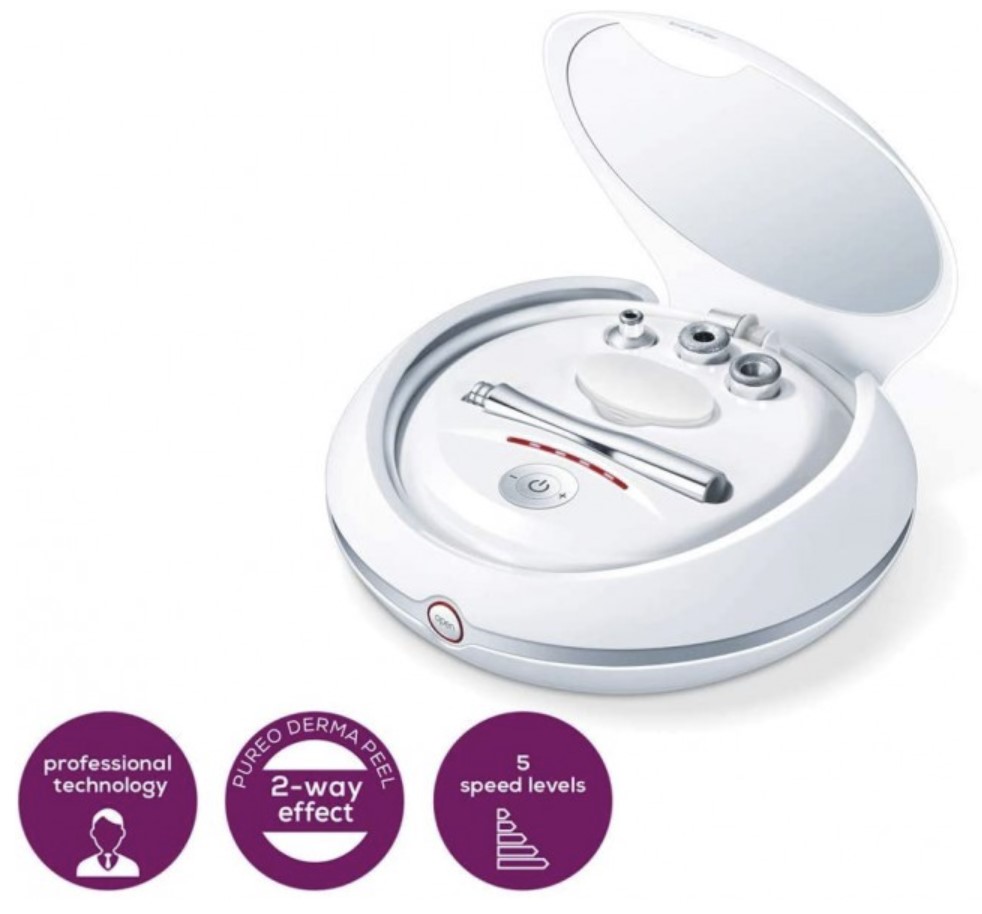 Beurer FC 100 Pureo Derma Peel – uređaj za mikrodermoabraziju. Mikrodermabrazija je danas neizostavan tretman u svakom kozmetičkom salonu. Ujednačuje ten, te čini kožu mlađom i podatnijom. Ovaj profesionalni uređaj na jednostavan i siguran način omoguće dubinsko čišćenje lica kod kuće.
