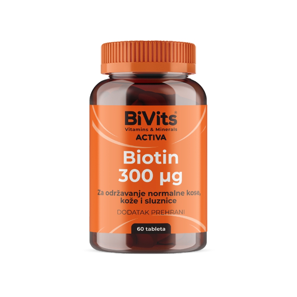 BiVits Activa Biotin 300 µg je ključ za vašu ljepotu iznutra. Ovaj visoko koncentrirani dodatak prehrani čini vašu kosu, kožu i nokte jačim i zdravijim.