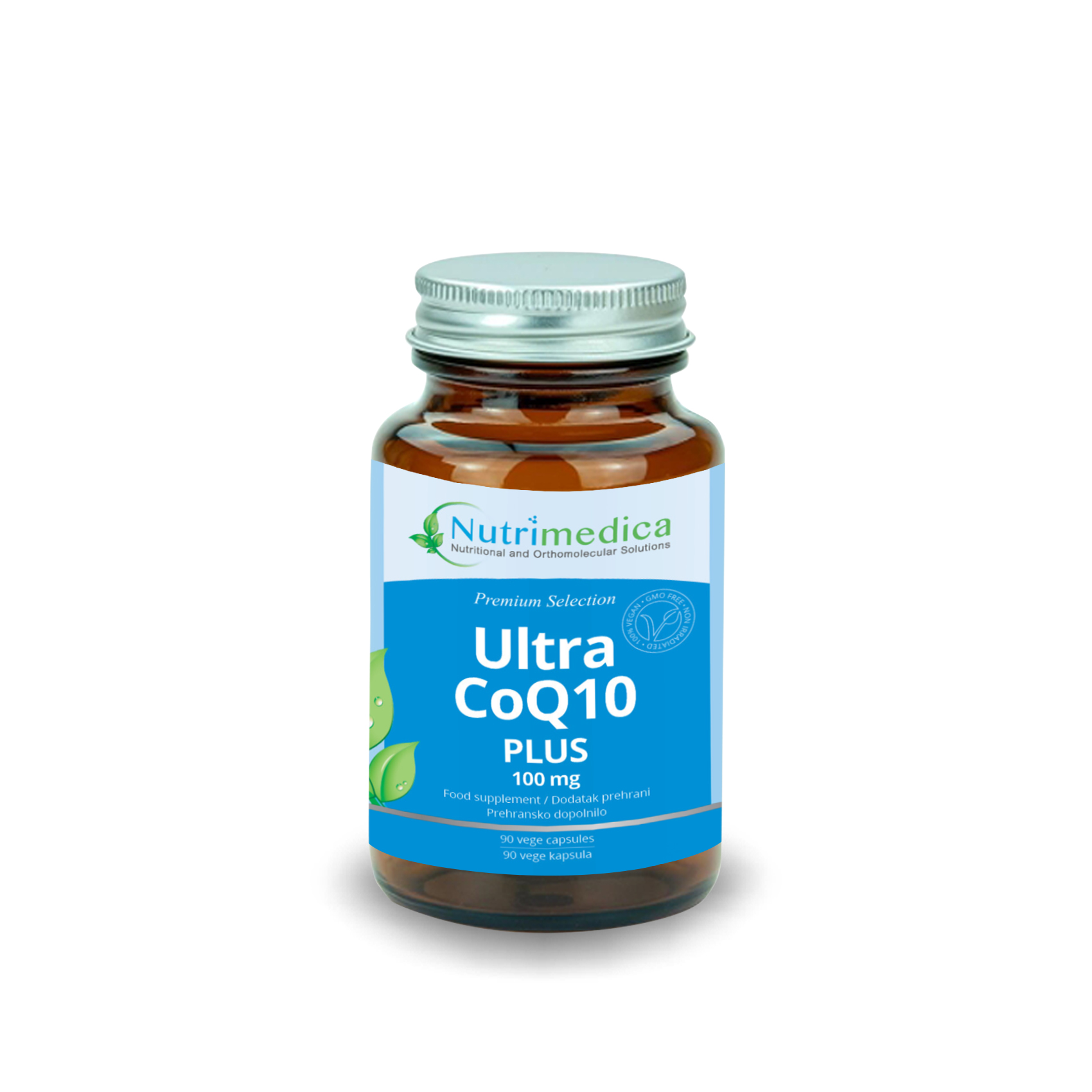 Nutrimedica Ultra CoQ10 100 mg je dodatak prehrani koji sadrži 100 mg koenzima Q10 (ubikinona), 400 mg vitamina C i 42 mg vitamina E iz D-alfa tokoferola.