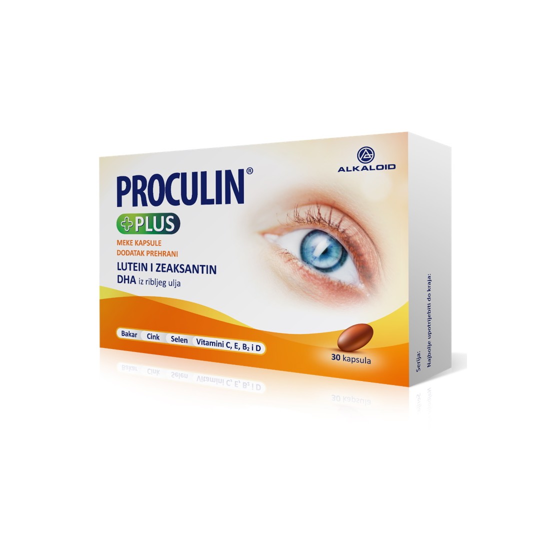 Proculin® Plus meke kapsule su dodatak prehrani koji sadrži DHA, lutein, zeaksantin, vitamine i minerale. Imaju ulogu u održavanju normalnog vida i štite stanice od oksidacije.