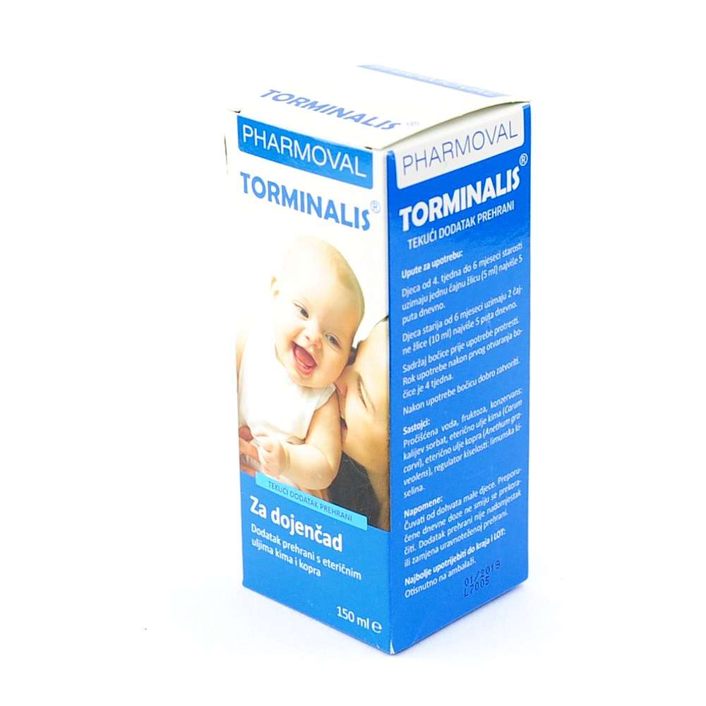 150 mL Primjenjuje se kod djece već od 4. tjedna starosti i to u 5 malih obroka dnevno, najbolje uz hranjenje. Daje se na žličicu. Uklanjajući grčeve u trbuhu, Torminalis tekući dodatak prehrani smiruje djete i omogućuje mu neophodan i bezbrižan san.