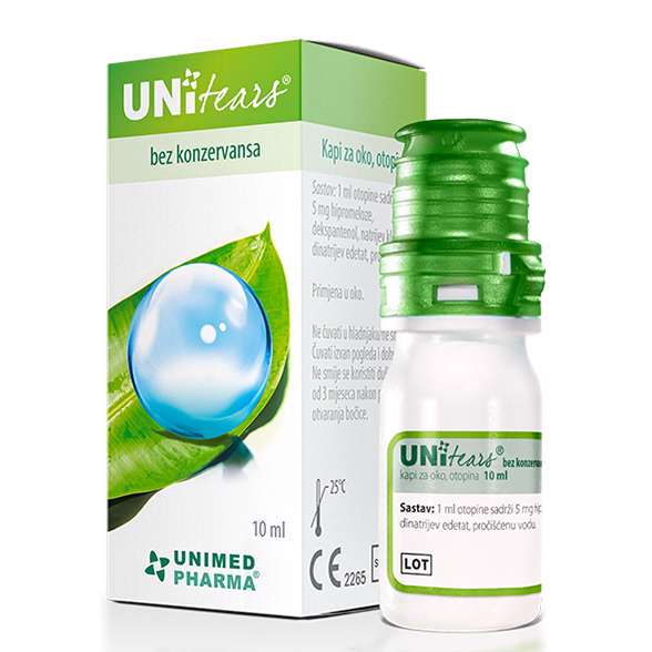 UNItears bez konzervansa su kapi za oko koje sadrže hipromelozu i dekspantenol. Imaju zaštitni, epitelizirajući i hidratantni učinak. Hipromeloza stvara privremeni zaštitni film na površini oka, vlaži površinu oka i služi kao zamjena u slučaju nedovoljnog stvaranja suza. Uklanja osjećaj suhog oka, također olakšava blagu iritaciju oka neinfektivnog porijekla. Dekspantenol (vitamin B skupine) pomaže u obnavljanju stanica na površini oka (epitelizacija).