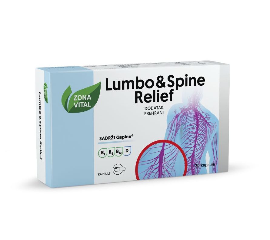 Zona Vital Lumbo & Spine Relief dodatak prehrani s Qspine® (sadrži citidin, uridin, vitamin B6, B12, D i tiamin/B1) i cinkom.
